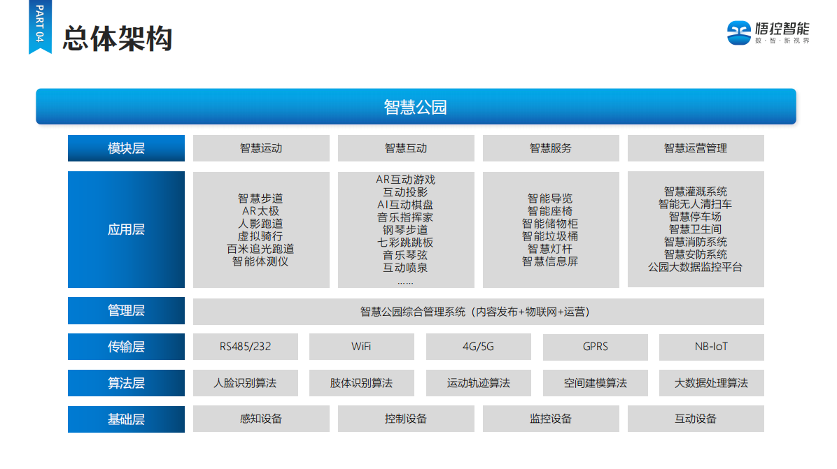 运用人工智能、物联网、大数据、云计算、5G等新一代信息技术,打造科技、有趣、健康、智能的宜居公园,为市民或游客提供智慧体验、智慧服务,同时助力公园智慧管理。