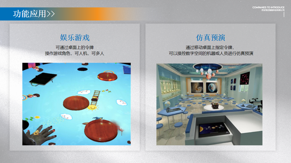 物体互动识别桌是指人,物,屏三者结合,利用Marker与手势结合的自然语言交互技术,融合展现虚拟现实和多媒体内容。